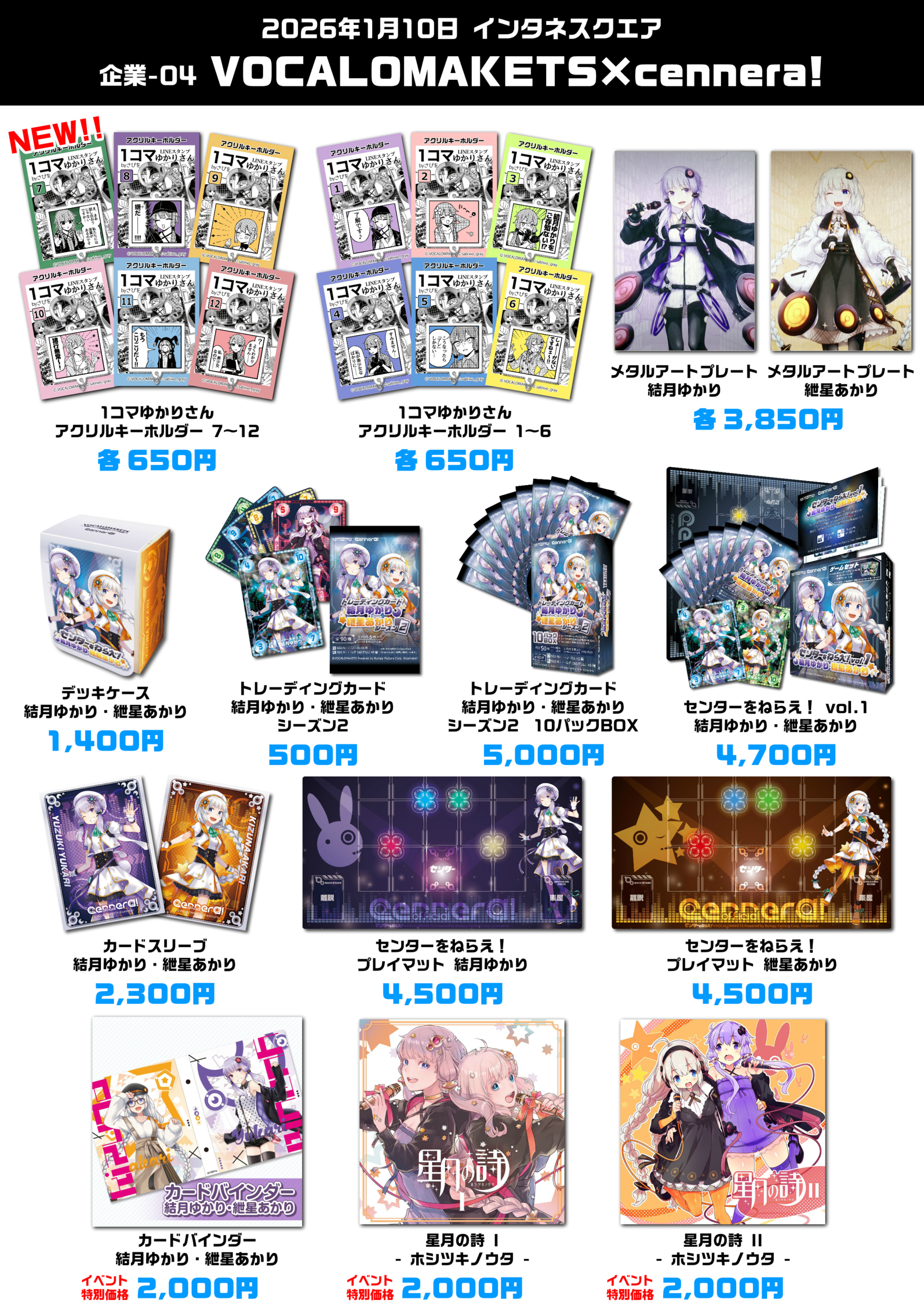 2026年1月10日に開催されるインタネスクエアVOCALOMAKETS×cennera!ブース(企業-04)にてcennera!グッズが販売されます。
